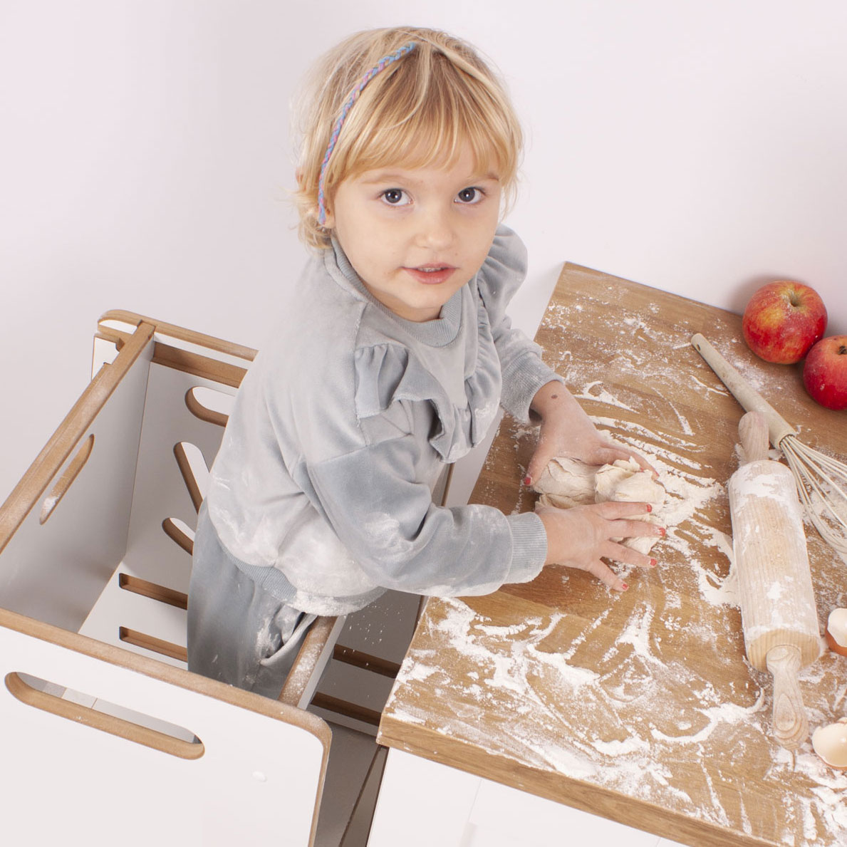 Kitchen Helper to ergonomiczna konstrukcja, przypominająca wysoką krzesełko z dodatkowymi stopniami lub platformą, która umożliwia dziecku swobodne stanie na wysokości blatu kuchennego. To praktyczne urządzenie pomaga dzieciom być bardziej niezależnymi, ucząc je, jak pracować w kuchni w sposób odpowiedzialny. Dzięki Kitchen Helperowi dzieci mogą brać czynny udział w codziennych obowiązkach kuchennych, takich jak mieszanie składników, mycie warzyw czy dekorowanie ciast. To nie tylko wspiera rozwój umiejętności, ale również buduje poczucie własnej wartości i samodzielności.