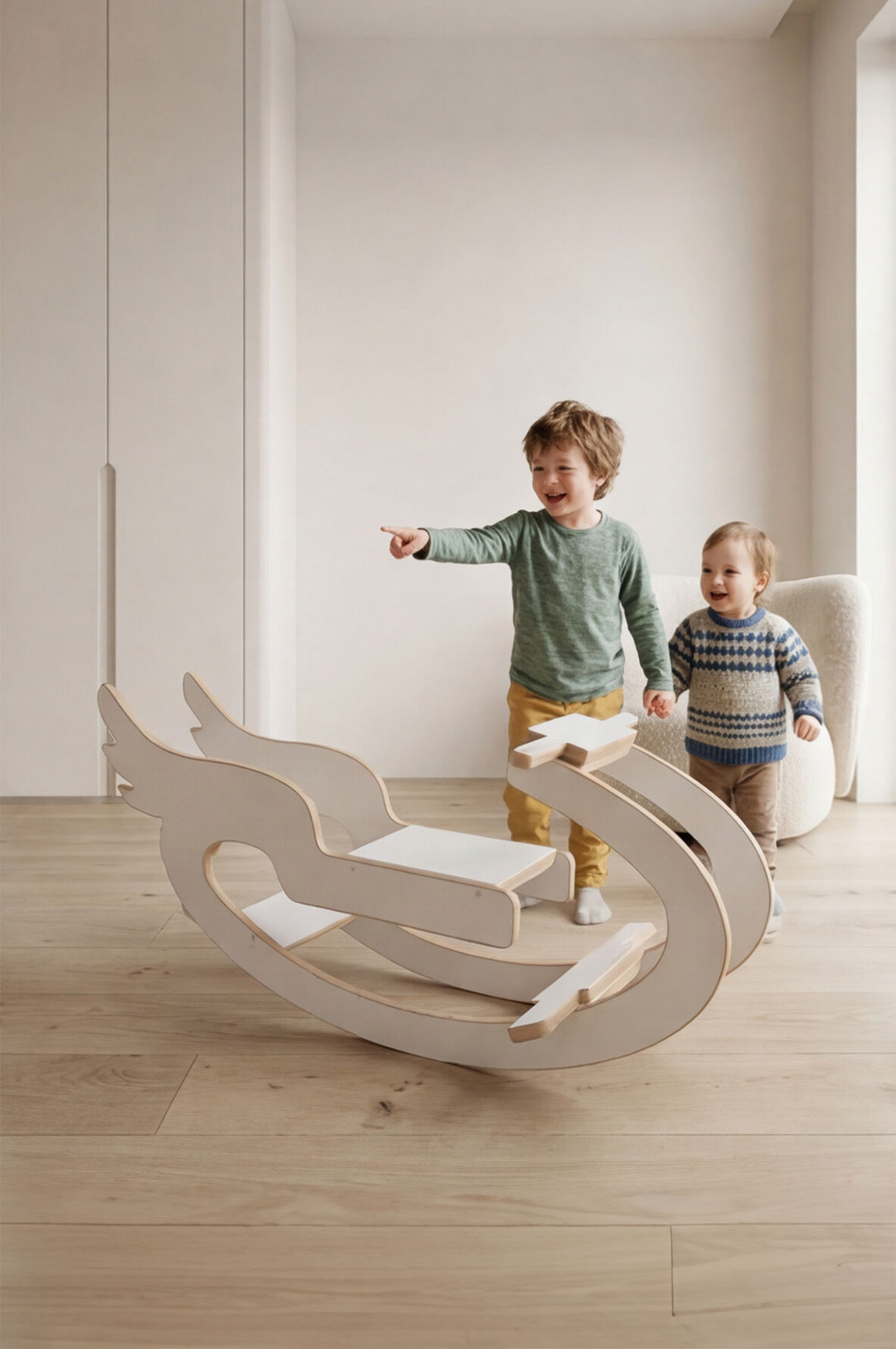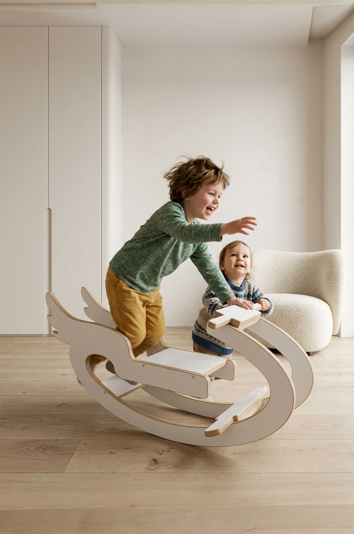 Właśnie dlatego w bujaku kidHERO bezpieczeństwo zostało potraktowane jako punkt wyjścia całego projektu. Tylne skrzydło stabilizujące nie jest tylko dodatkiem — to kluczowy element, który zwiększa komfort użytkowania, daje rodzicom większy spokój i pozwala dziecku cieszyć się zabawą w bardziej bezpiecznych warunkach. Dzięki temu bujak staje się nie tylko piękną zabawką, ale również przemyślanym produktem stworzonym z myślą o codziennym użytkowaniu przez najmłodszych.