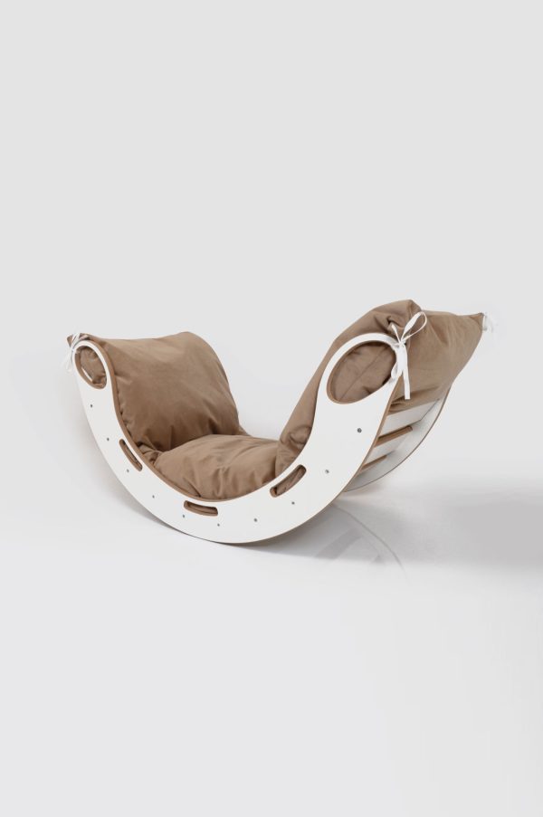 Zestaw 2w1 – bujak z poduszką. Jako osoba dorosła – gdy spojrzysz na nasz produkt to z pewnością zobaczysz – bujankę, łuk do wspinaczki, wygodne siedzisko, bujany stelaż lub drewnianą zabawkę. Jeśli jednak spróbujesz wyobrazić sobie ten produkt oczami dziecka i przyjrzysz mu się dobrze, to odkryjesz, że może on mieć dziesiątki różnych zastosowań w Twoim domu – może to być :