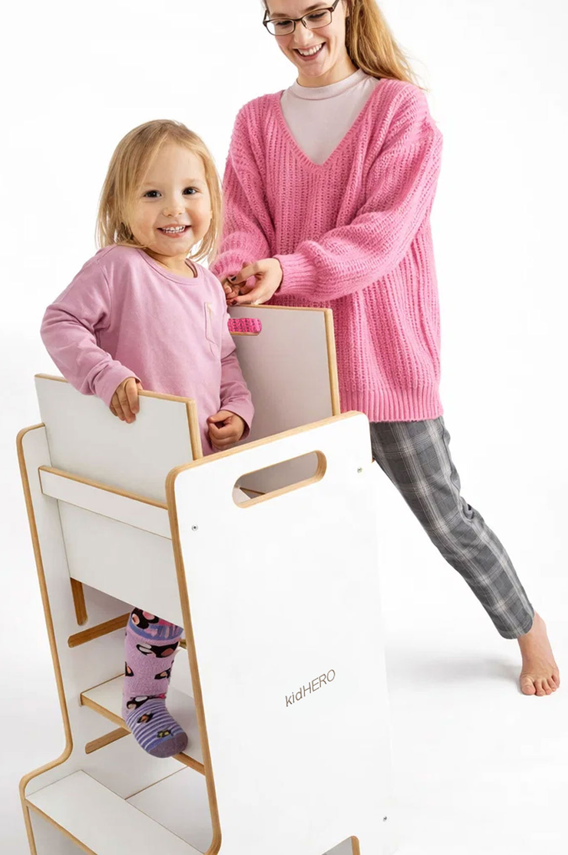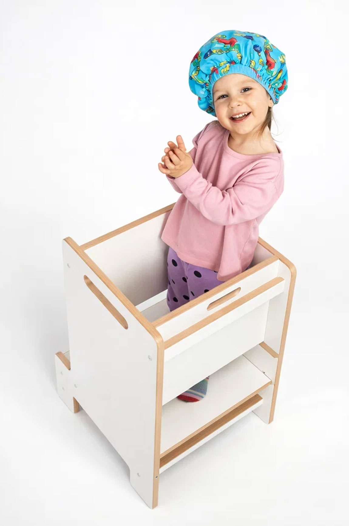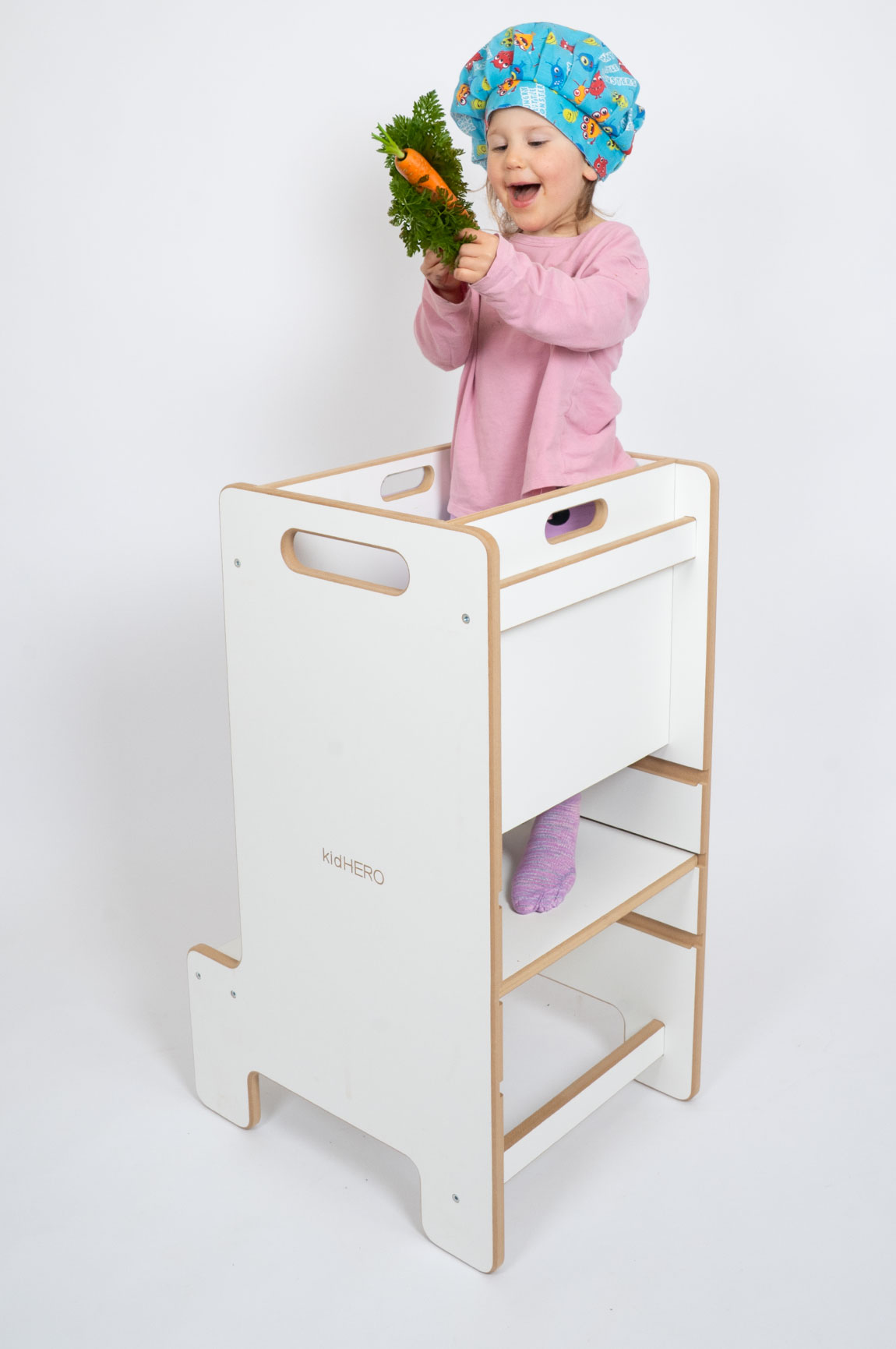 Najnowszy i kolejny raz ulepszony produkt – kitchen helper „ULTRA SAFE”. Jedyny na rynku. Najlepszy pomocnik kuchenny dla najmłodszych. Pożegnaj się z niebezpiecznymi i niestabilnymi krzesłami i przywitaj się z nowym poziomem bezpieczeństwa i zabawy w kuchni . Może również służyć jako idealny prezent na każdą okoliczność.