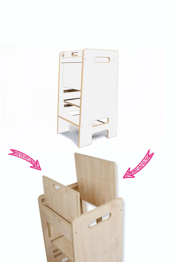 Ten mebel jest idealny dla bardzo żywych i wymagających dzieci. Wsuwana płyta zapobiegają wypadnięciu dziecka z pomocnika. Płytę można wysunąć, aby dziecko mogło samodzielnie wchodzić i wychodzić. Gdy dziecko z niego wyrośnie, płytkę można na stałe zdemontować.
