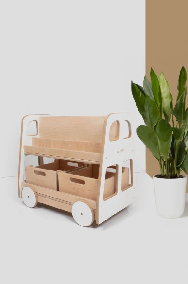 Mobilny regał na kółkach XXL dla dzieci – Autobusik ze skrzyniami na zabawki