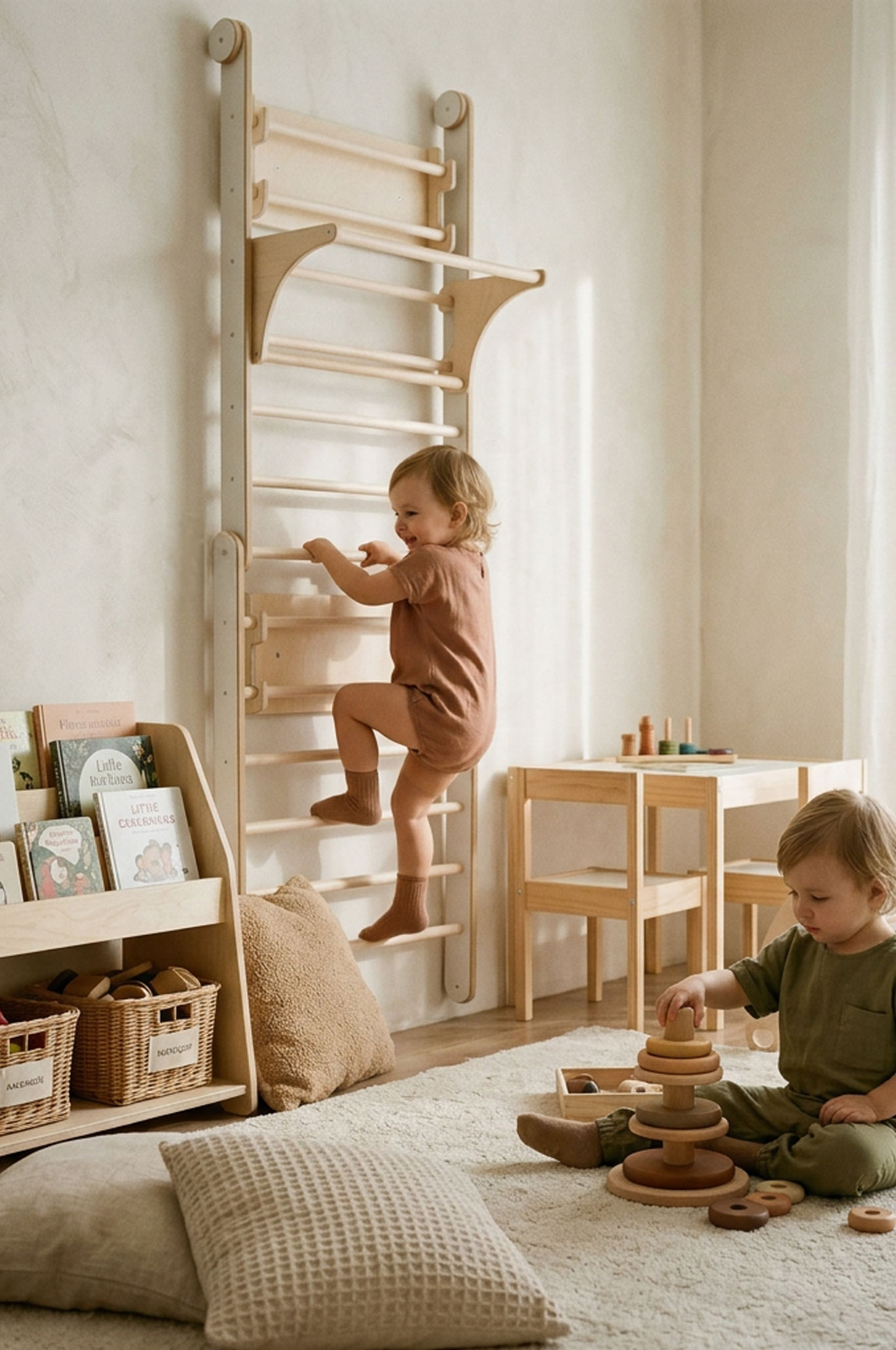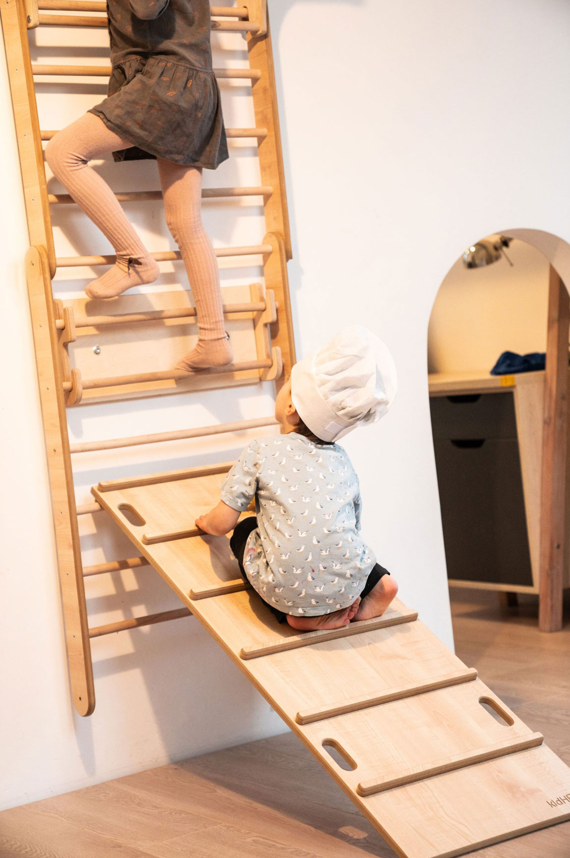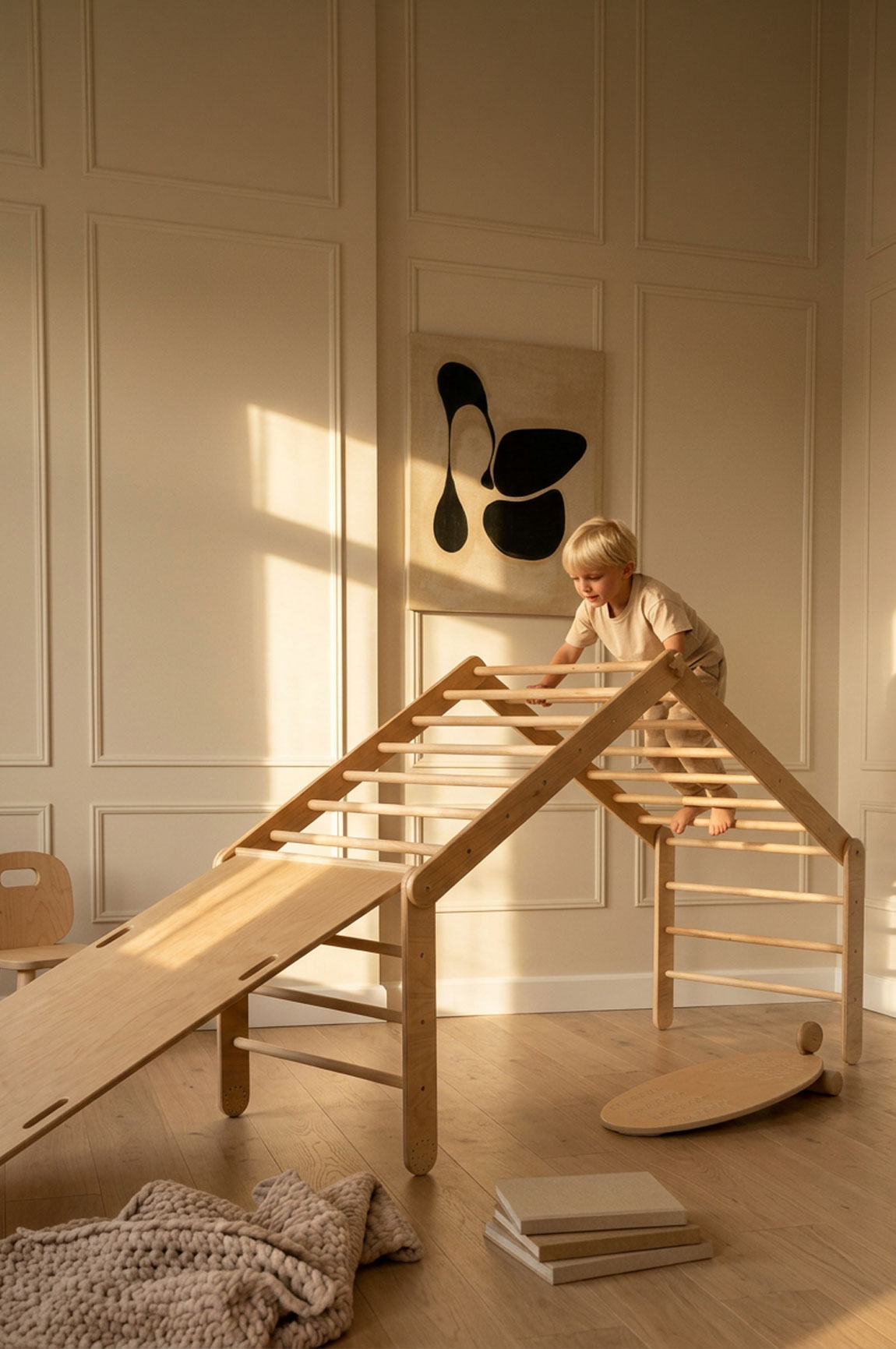 Nasze drabinki dla dzieci marki kidHERO to zabawki zaprojektowane i wykonane z troską o bezpieczeństwo i rozwój najmłodszych. Wykorzystujemy tylko atestowane materiały najwyższej jakości. Dbamy o to, aby nie było ostrych krawędzi czy rogów, które mogłyby stanowić potencjalne zagrożenie podczas zabawy. Jednocześnie, zgodnie z filozofią pedagogiki Montessori, przykładamy dużą wagę do estetyki naszych zabawek. Uwielbiamy skandynawski design, a naszą misją jest zachęcanie dzieci do różnorodnych aktywności fizycznych. W rezultacie każdy pikler marki kidHERO to harmonijne połączenie funkcjonalności, bezpieczeństwa, trwałości i precyzji wykonania – cechy, które powinny wyróżniać wszystkie zabawki dla dzieci.