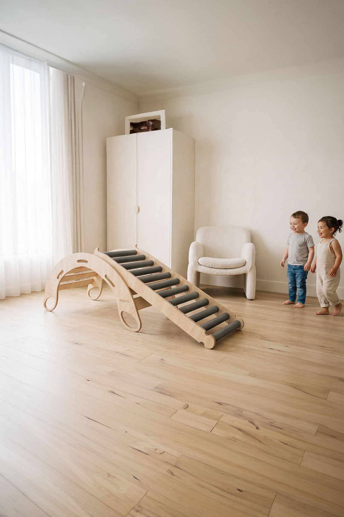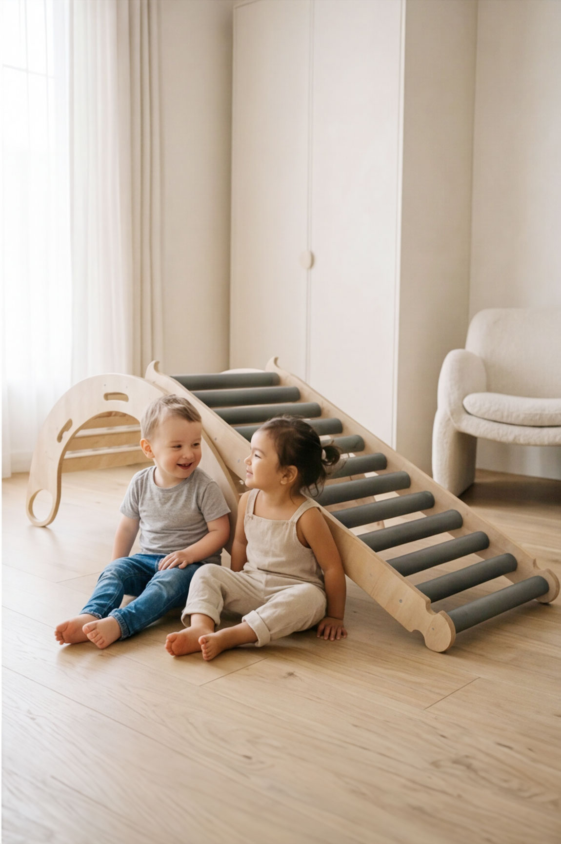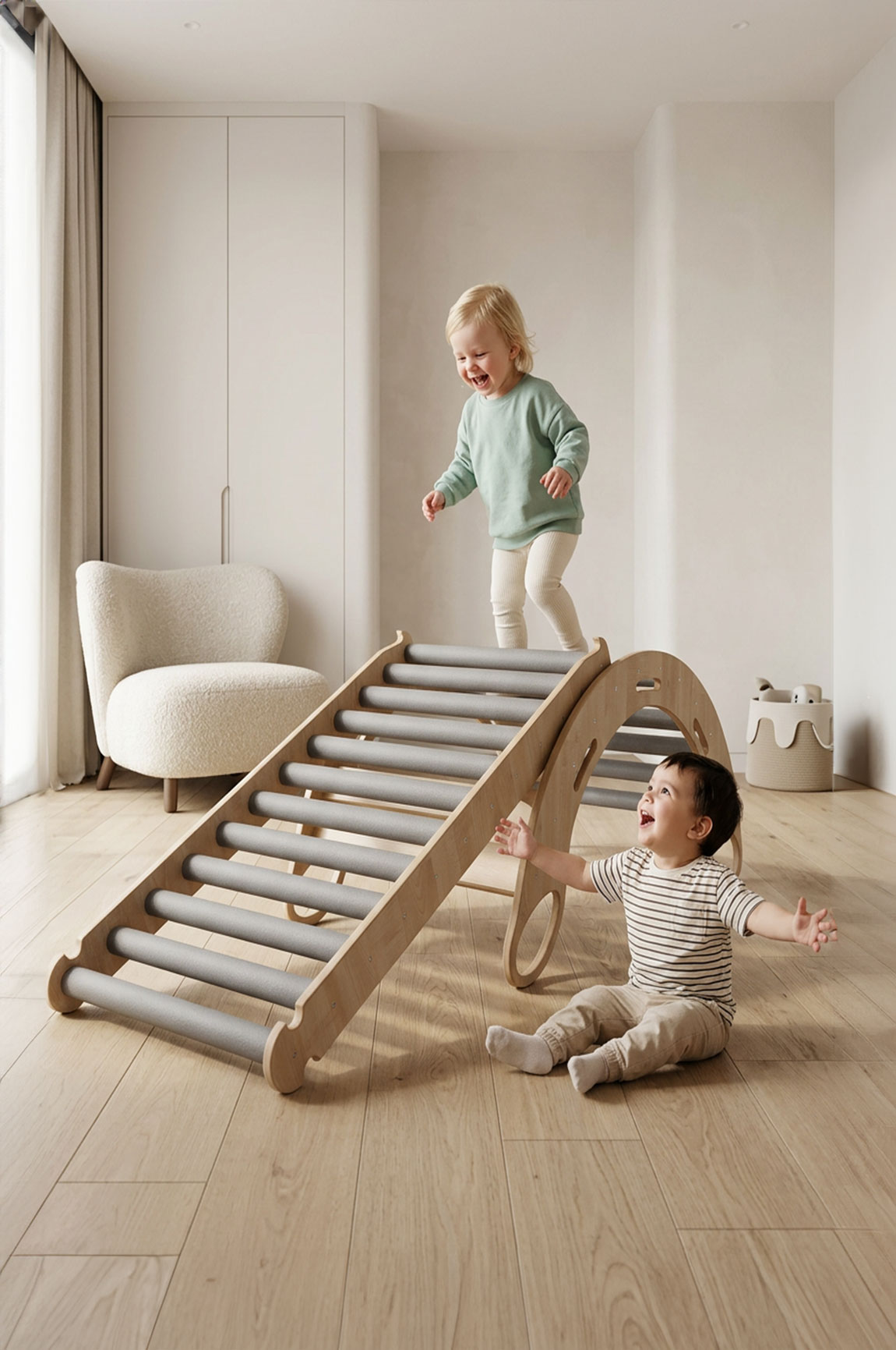 Po połączeniu zjeżdżalni rolkowej z bujakiem Twoje dziecko zyskuje domową przestrzeń do wspinania, balansowania, przechodzenia i zjeżdżania. To zestaw, który nie tylko daje ogromną radość, ale także wspiera rozwój motoryczny, sensoryczny i koordynacyjny już od najmłodszych lat.