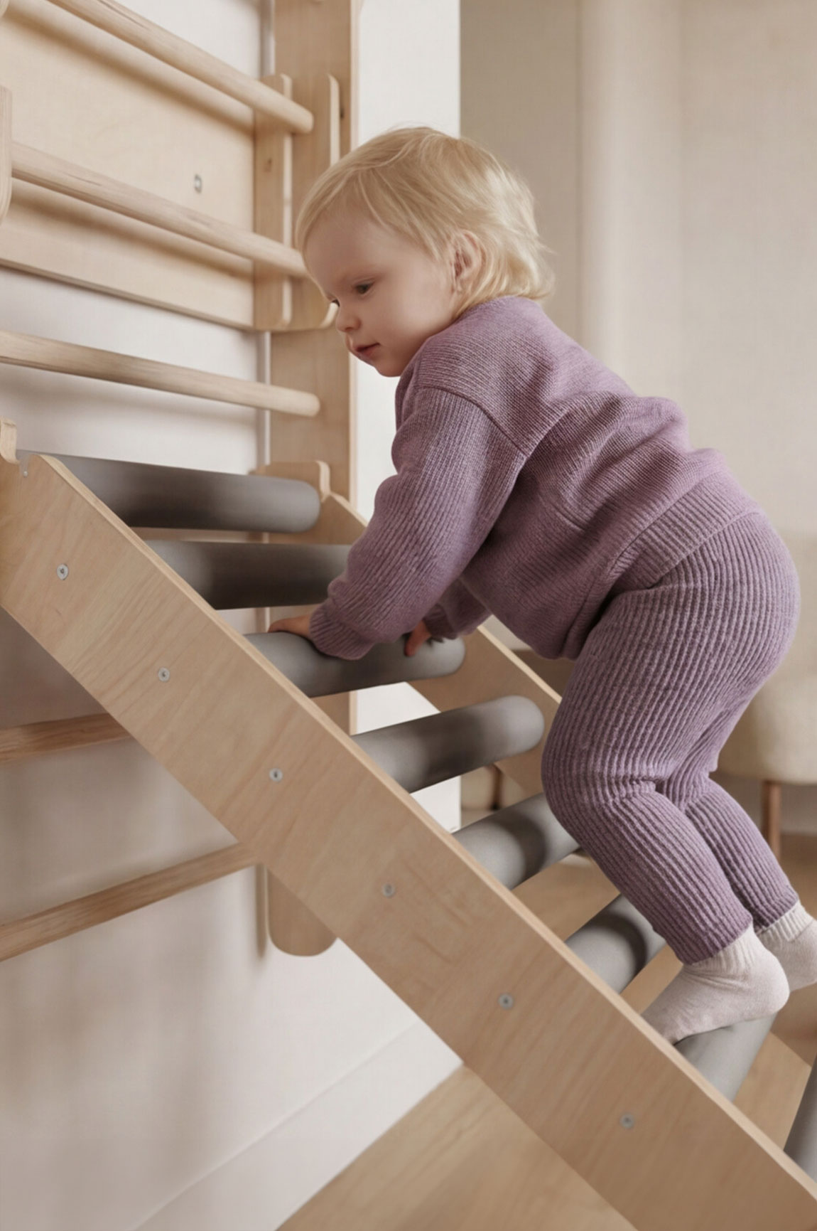 Zestaw Taternika 2w1 został stworzony zgodnie z ideą wspierania naturalnej aktywności dziecka. Pozwala maluchowi samodzielnie odkrywać możliwości własnego ciała, ćwiczyć równowagę, podejmować próby, pokonywać małe trudności i budować pewność siebie.